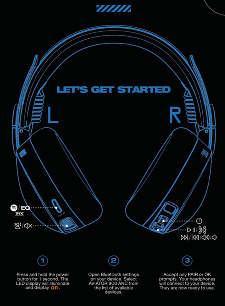 Another quick way to enter Pairing Mode when your headphones are OFF is to press and hold the power button for 3 seconds. Your AVIATOR 900 ANC will power ON and enter directly into Pairing Mode.
