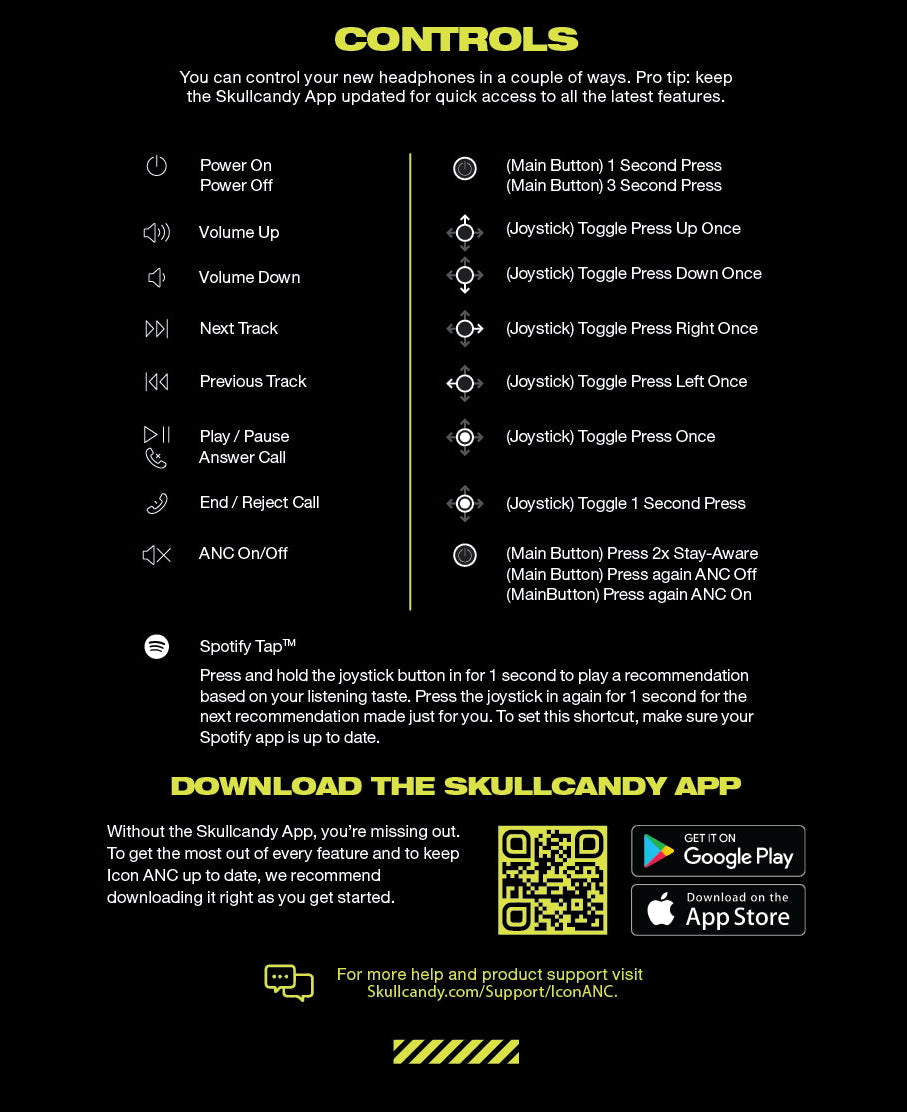 To unlock and control all of the incredible Icon ANC features, scan the QR code found on the packaging or in your Quick Start Guide/User Guide, and download the Skullcandy app.