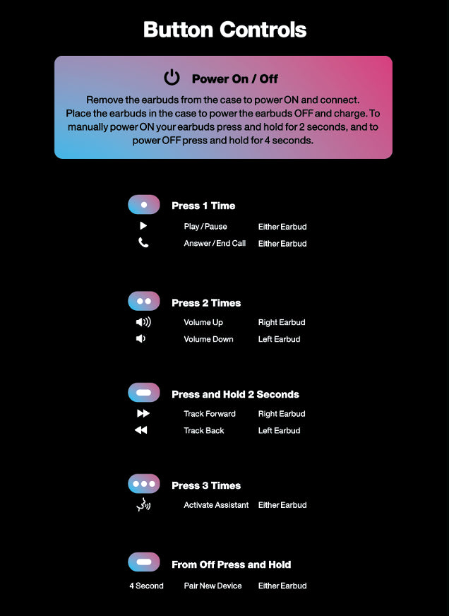 - When paired to your device, you can press the button on either the LEFT or RIGHT bud 3x to activate your voice assistant feature at any time.