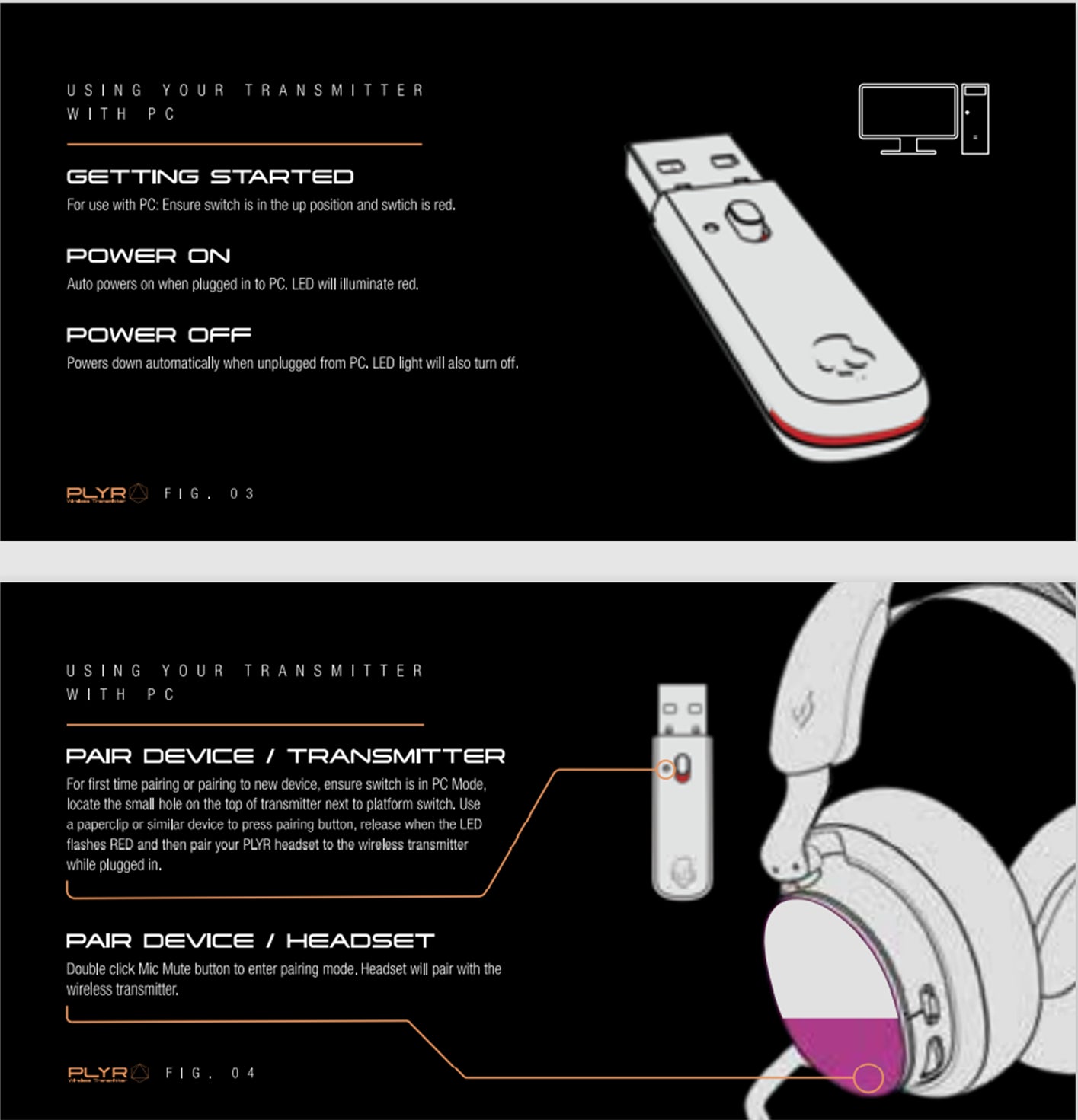 - Connect the PLYR Wireless Transmitter to any USB-A port on your PC.
