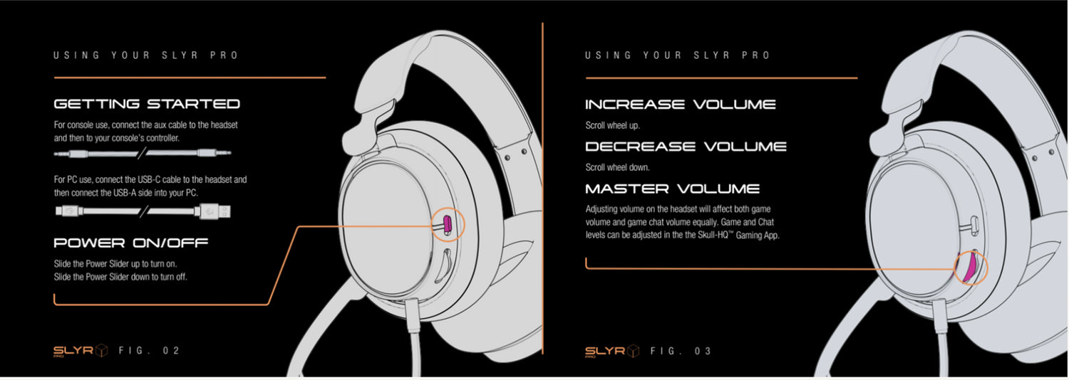 - Future SLYR Pro firmware updates with instructions are available via SKULL-HQ Software