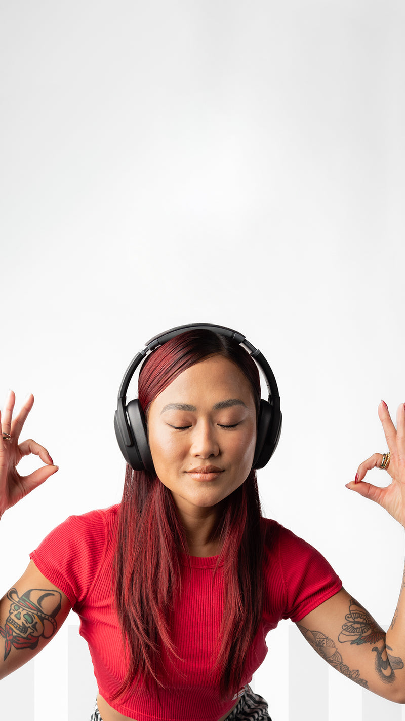 To personalize the audio on your Crusher Evo headphones, you can connect to the Skullcandy app to customimze your EQ settings for music, podcasts, or more bone-crushing bass. But beyond basic EQ setting, you also have Personal Sound by Audiodo™ that analyzes how you hear to personalize your music to your unique hearing.