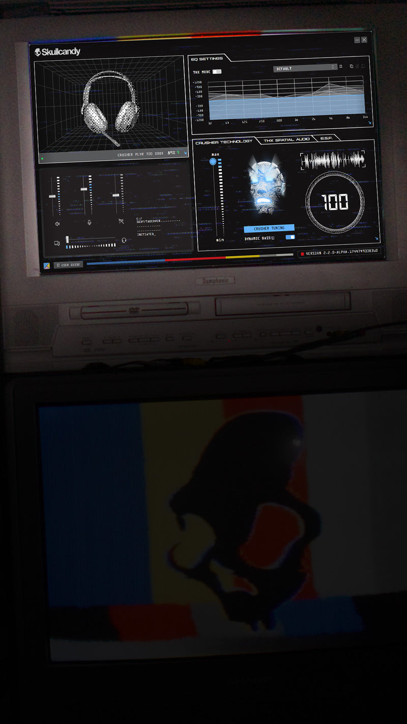 The Skull-HQ desktop or Skullcandy Mobile apps allow you to fine-tune advanced features for the ultimate gaming audio experience - from RGB headset settings, Crusher EQ customizer, THX Spatial Audio controls to a personalized Enhanced Sound Profile, and more.